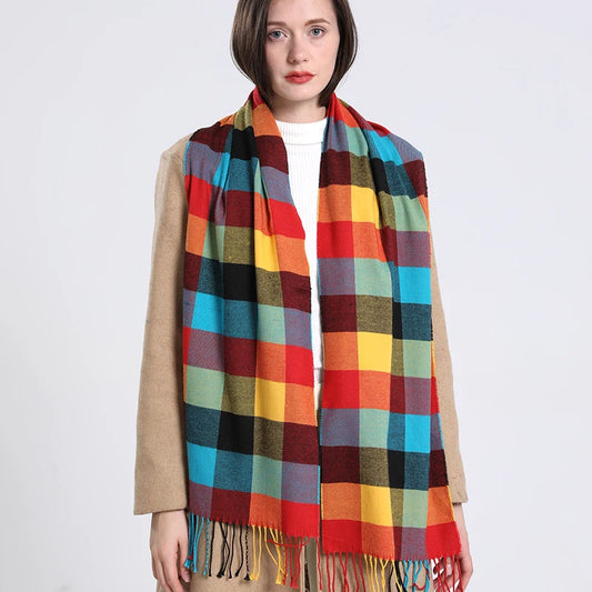 35 *220CM Luxury Checked Scarf Warm in Winter Cashmere Like Feel Rainbow Checked Fashion Versatile Women Tassel Shawl Scarf