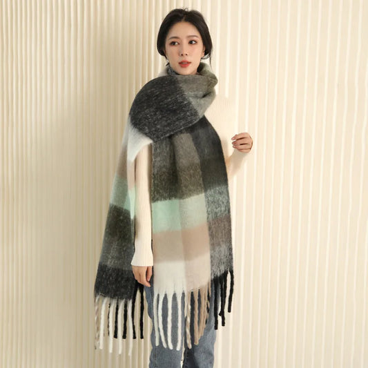 2023 New Women Simulated Cashmere Checker Scarf Warm in Winter Long Thick Cashmere Touch Tassel Fashion Color Checker Scarf